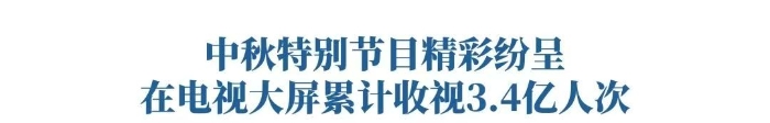 10月6日中秋节,《2025年中央广播电视总台中秋晚会》(CCTV-1、CCTV-2、CCTV-4、CCTV-15、CCTV-4K)在央视5个频道并机直播,综合收视率8.024%、收视份额32.416%,位列同时段上星频道节目收视率第一,其中综合收视率较去年上涨9.8%。