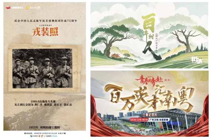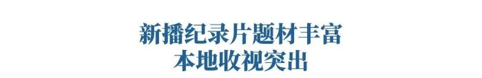历史纪录片《戎装照》(山东卫视)在10月25日中国人民志愿军抗美援朝出国作战75周年纪念日当晚播出,在山东本地收视率2.164%,位列同时段省级卫视节目收视率第一。自然类纪录片《树说·绿水青山》(四川卫视)10月29日晚间播出第一集,在四川本地收视率0.443%,较频道晚间时段纪录片平均水平高22.4%,位列同时段省级卫视节目收视率第一。社会现实类纪录片《青春的奔赴(第二季)》(广东卫视)讲述青年人的奋斗故事,本月首播10期,在广东本地收视率0.865%,是频道纪录片平均水平的6.3倍,位列同时段省级卫视节目收视率第一。