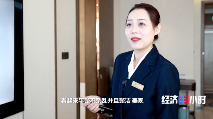 潍坊一家五星级酒店客房内,传统电视柜下那些缠绕的线缆和突兀的机顶盒已经消失了踪影。取而代之的,是整洁的墙面和这台高度集成的一体化电视。