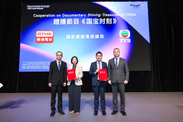 论坛期间,国家广播电视总局向香港电台、TVB赠播微纪录片《国宝时刻》,旨在向全球观众展示中华优秀传统文化魅力;华策影视集团与乐奇Rokid签署战略合作协议,共同探索科技赋能文化出海的新路径。