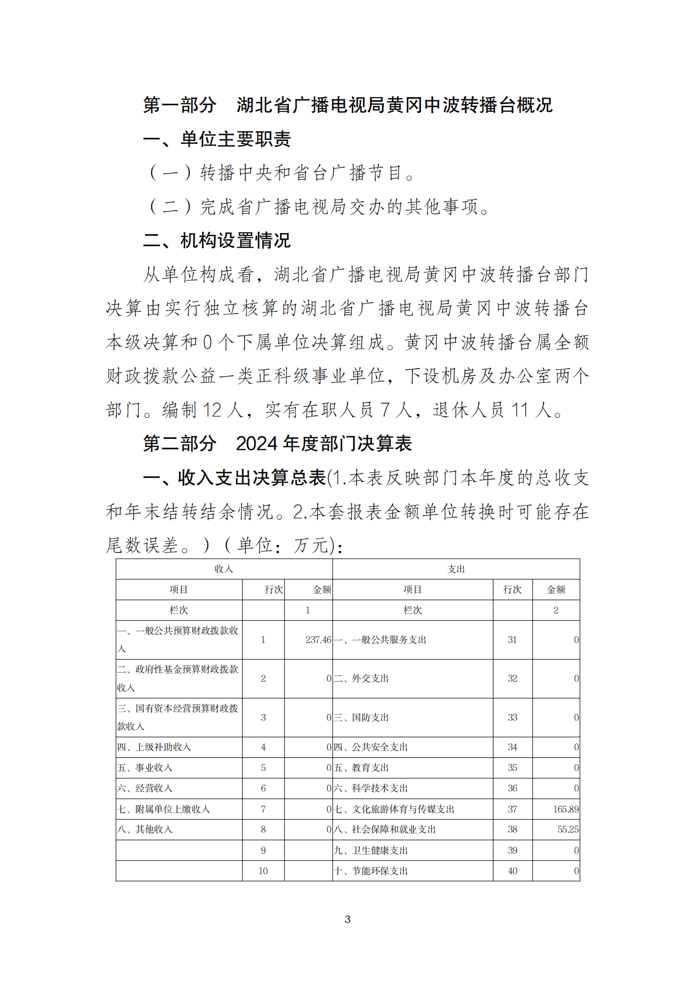 湖北省广播电视局黄冈中波转播台2024年度部门决算