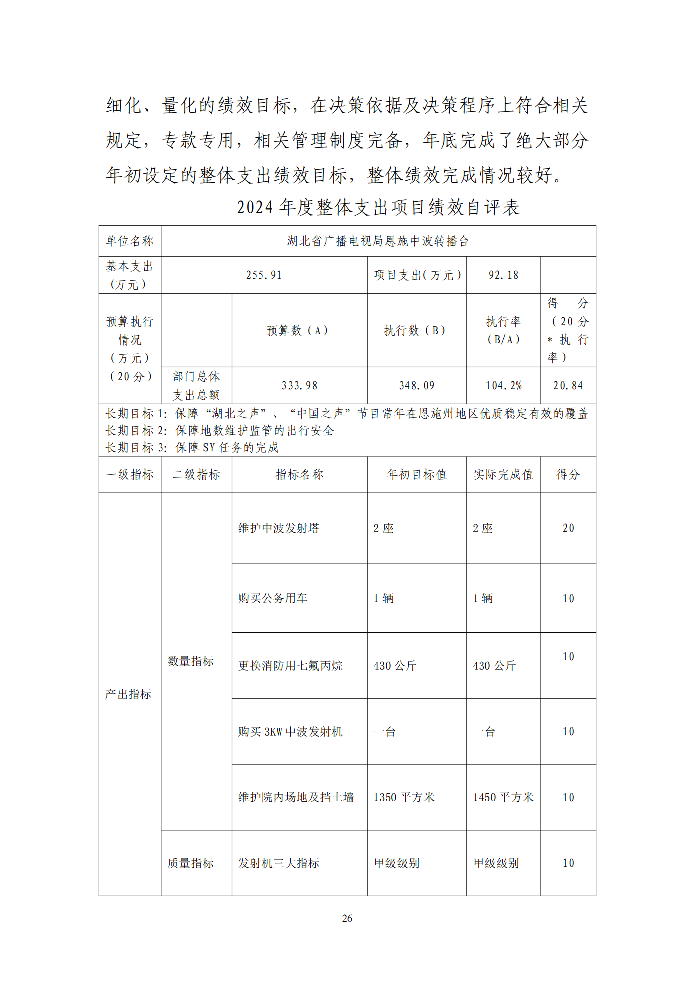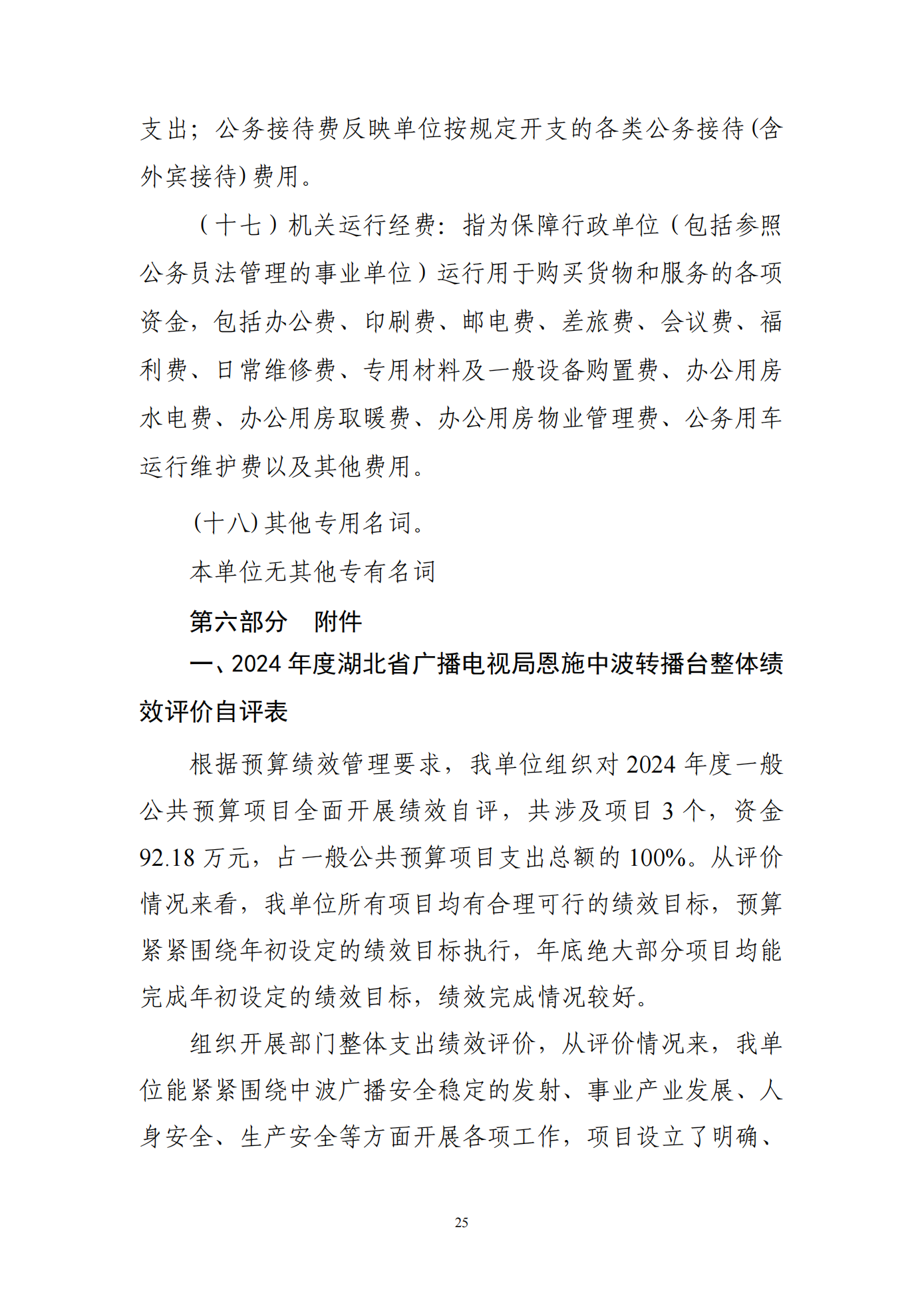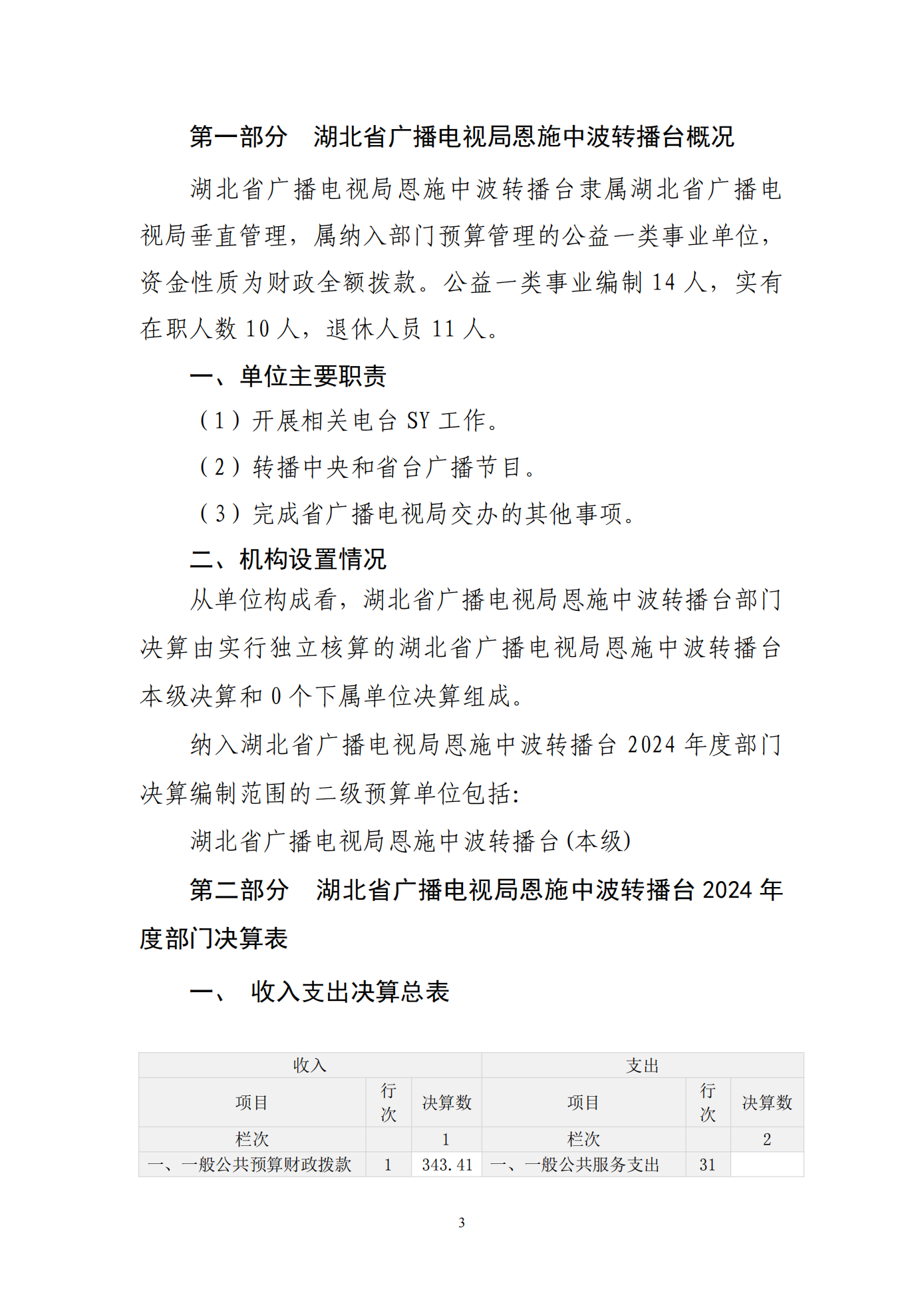 湖北省广播电视局恩施中波转播台2024 年度部门决算