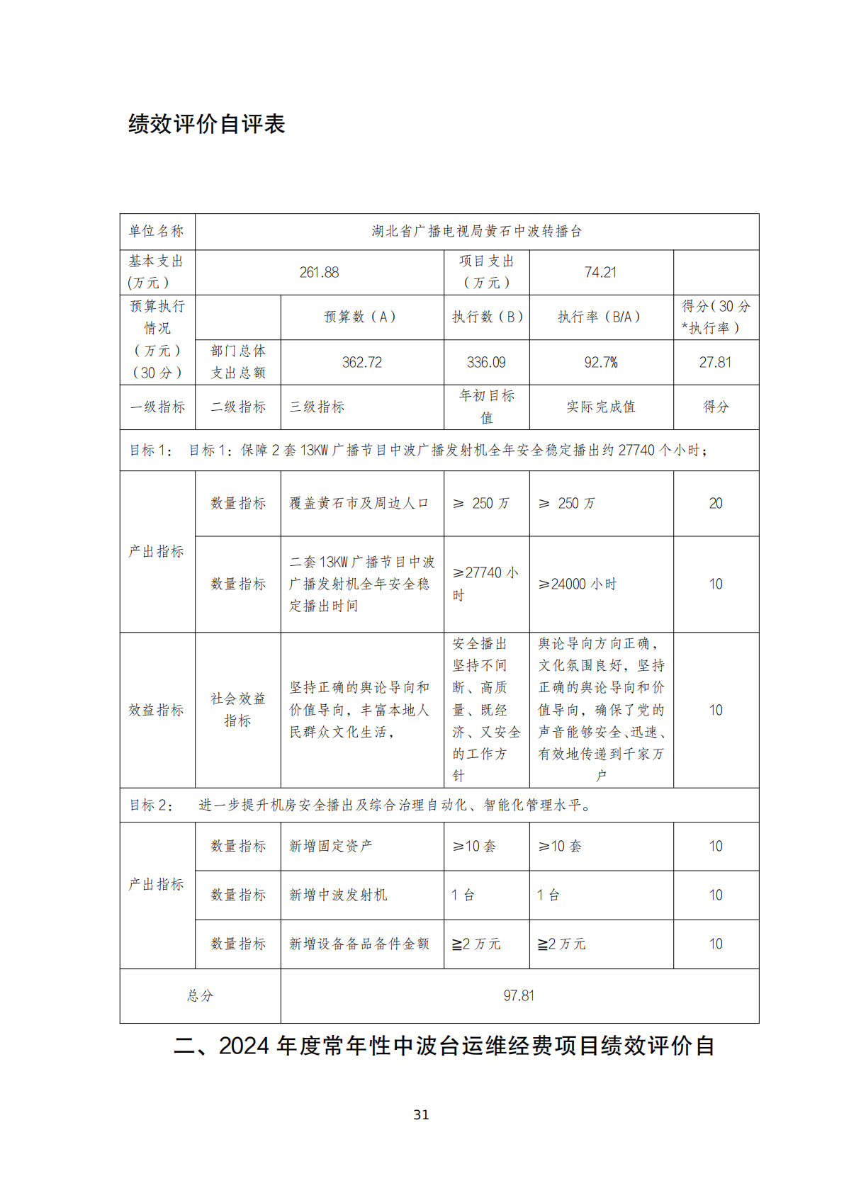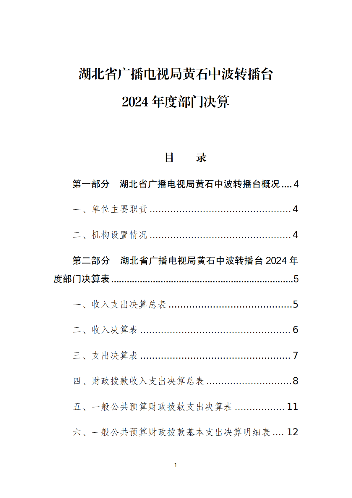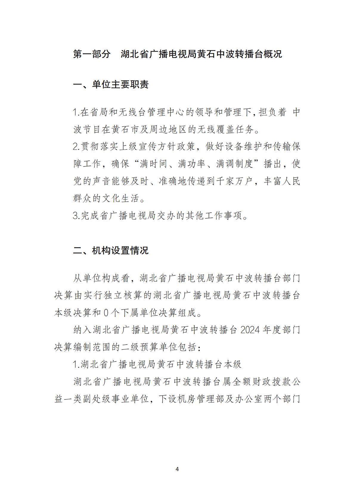 湖北省广播电视局黄石中波转播台2024年度部门决算