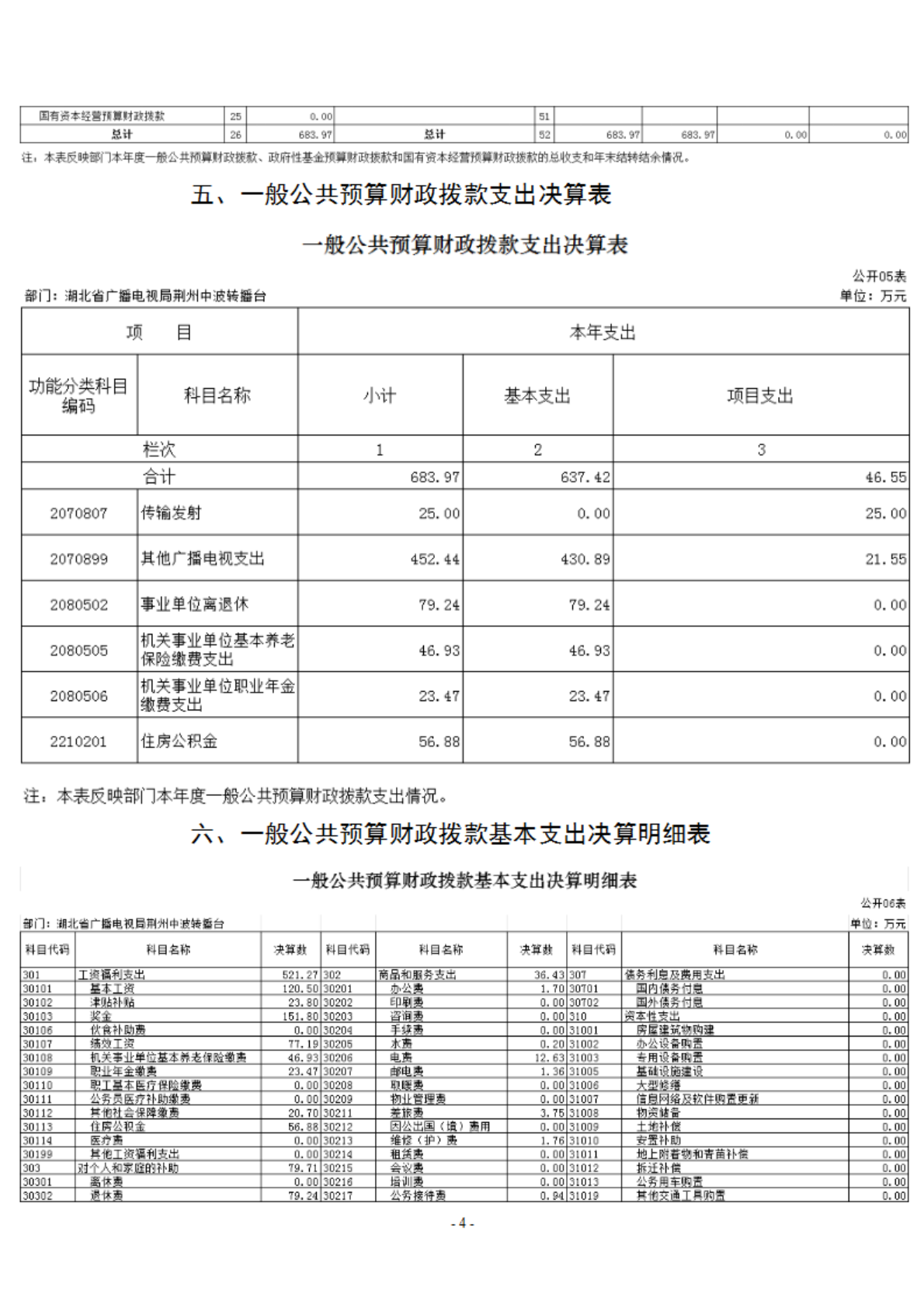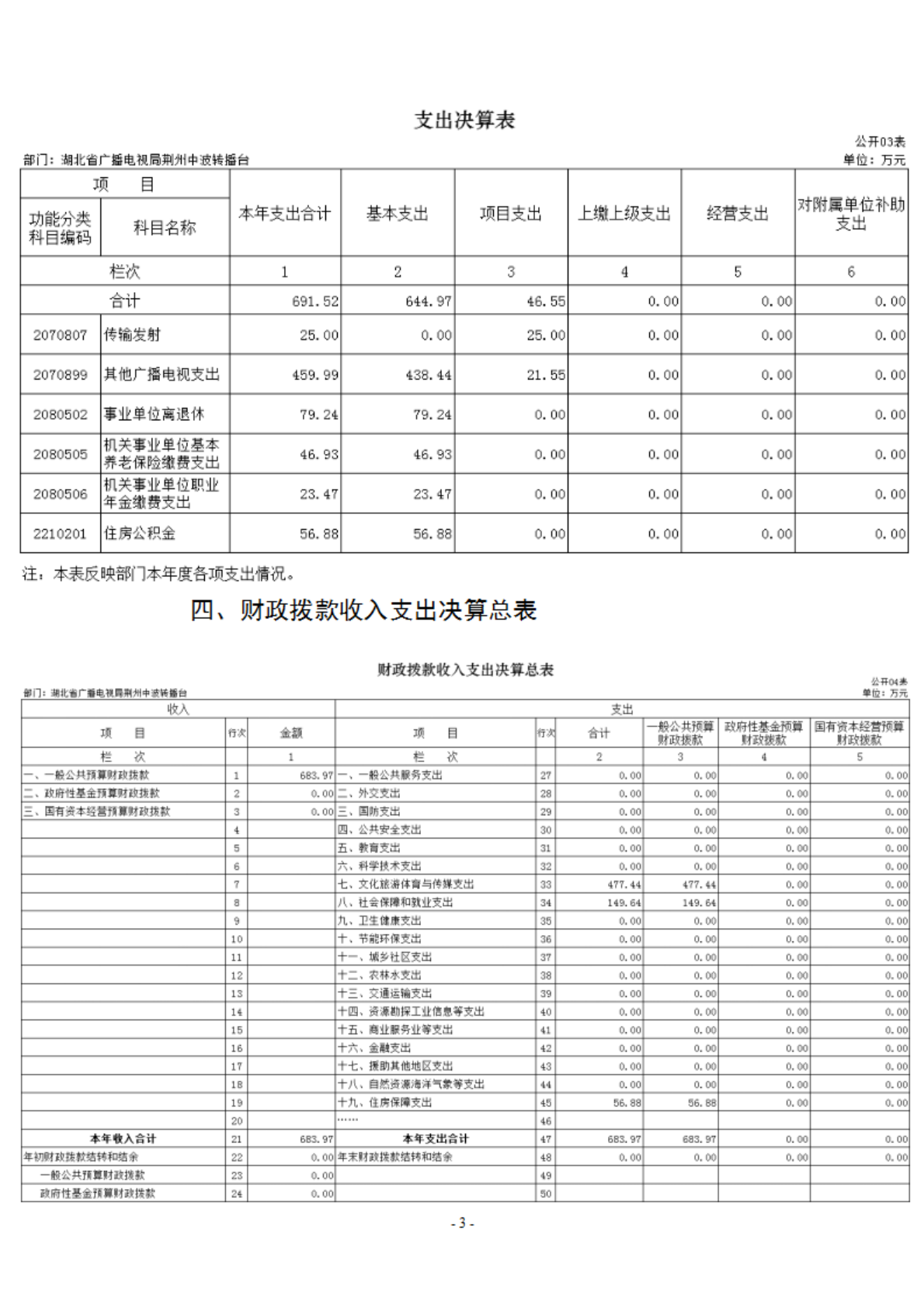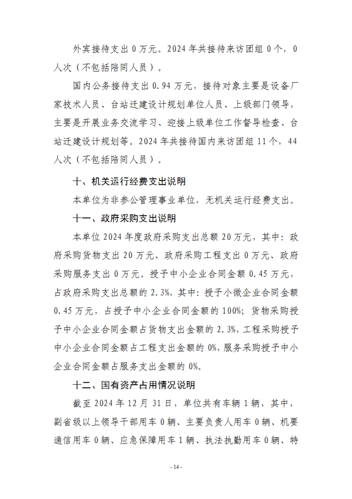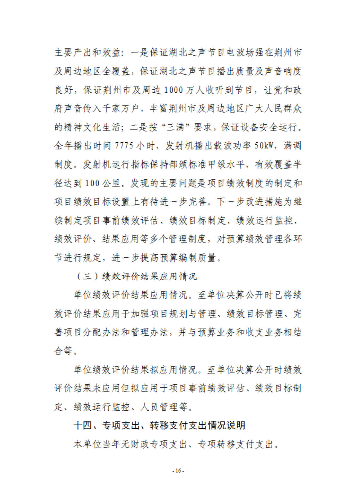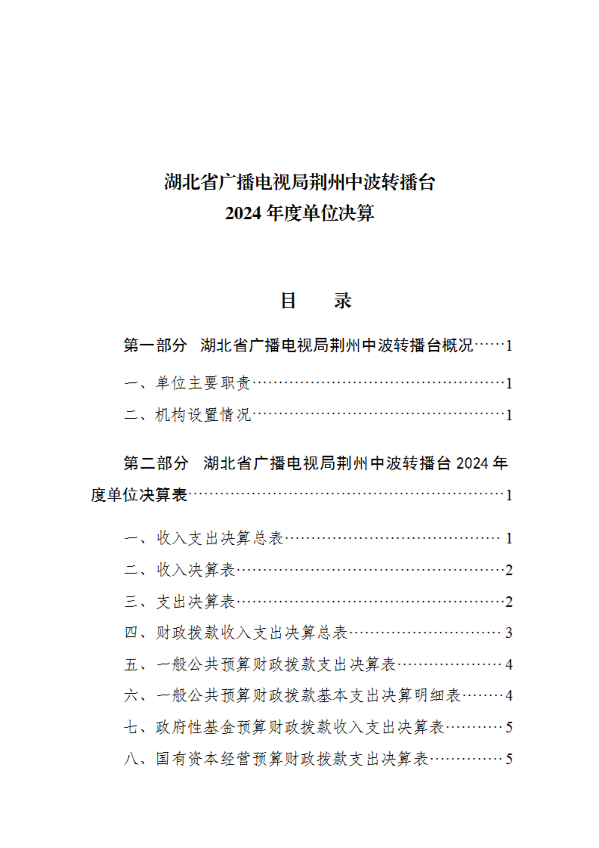 湖北省广播电视局荆州中波转播台2024年度单位决算