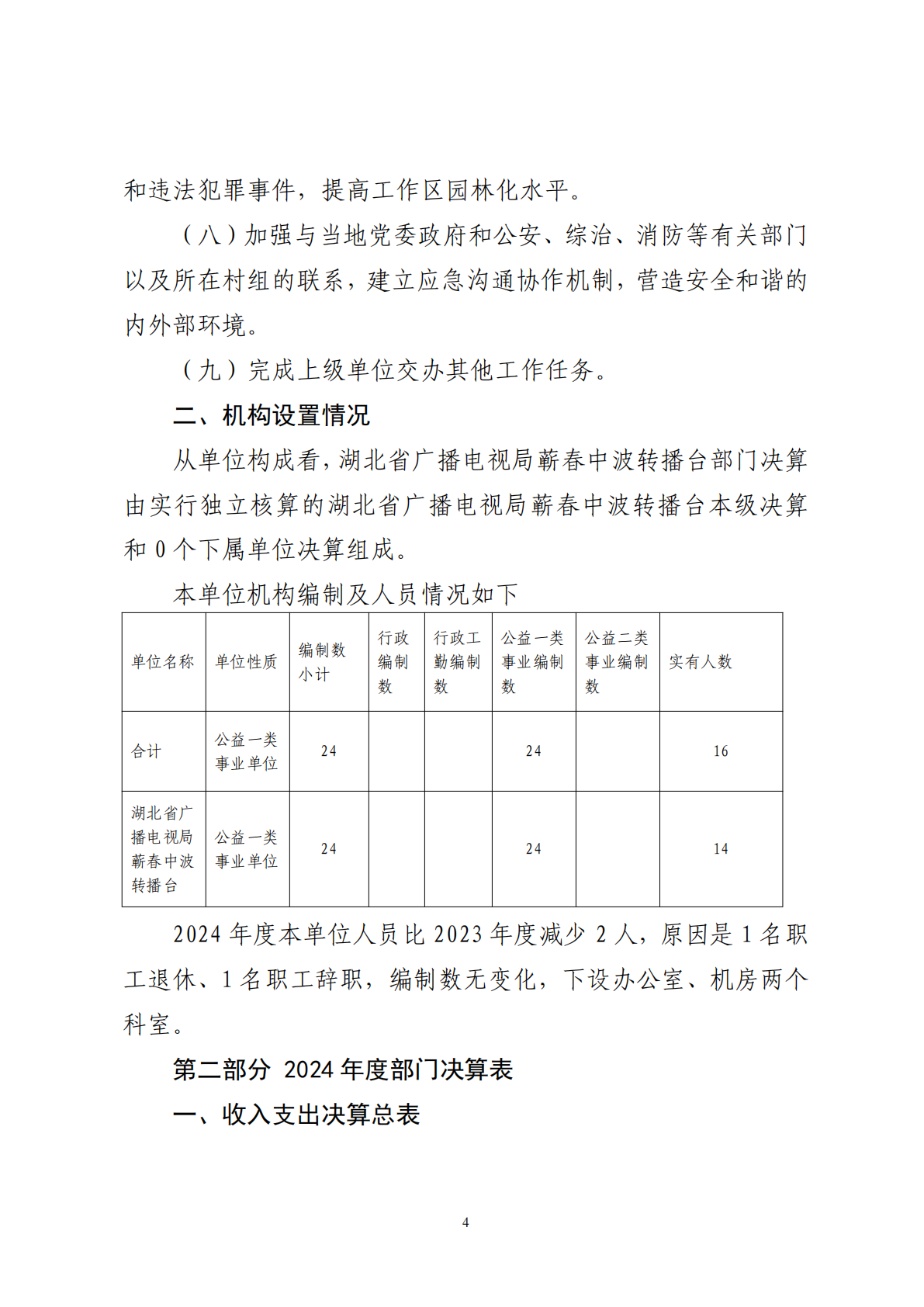 湖北省广播电视局蕲春中波转播台2024年度部门决算