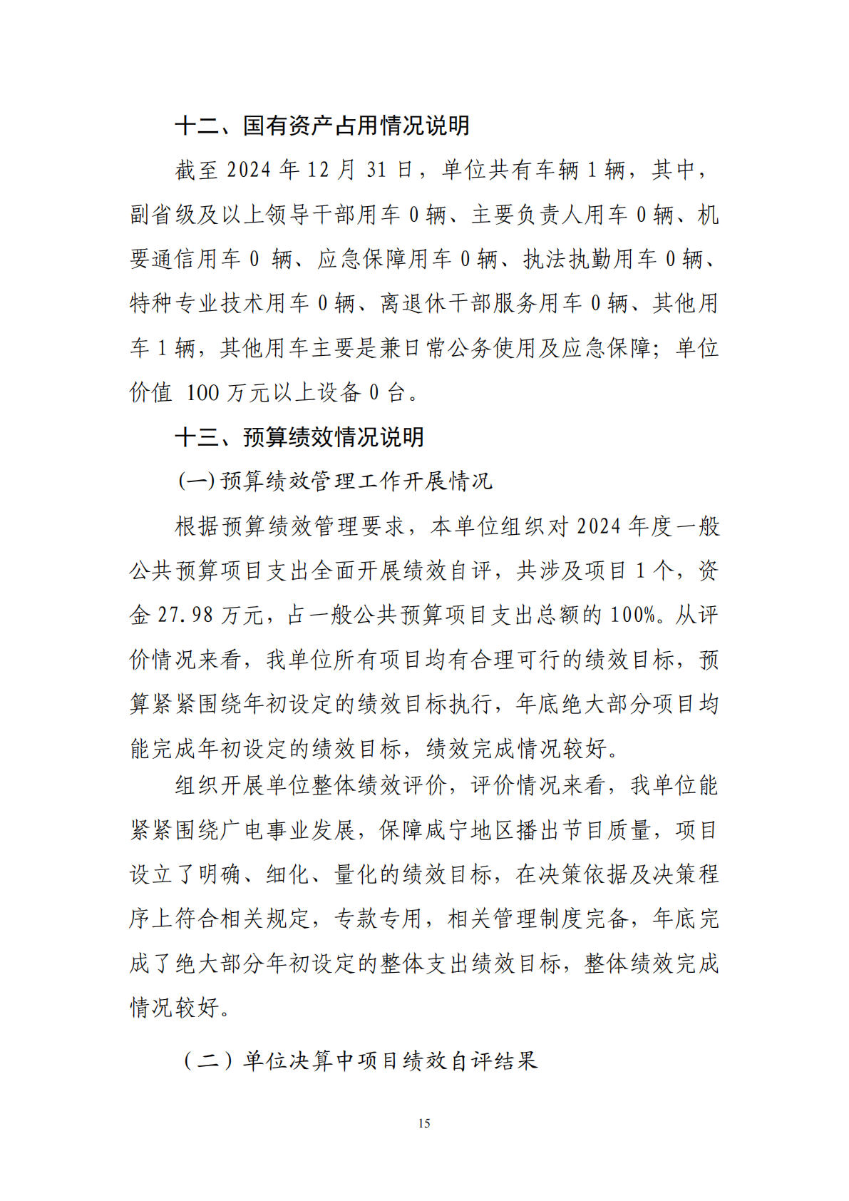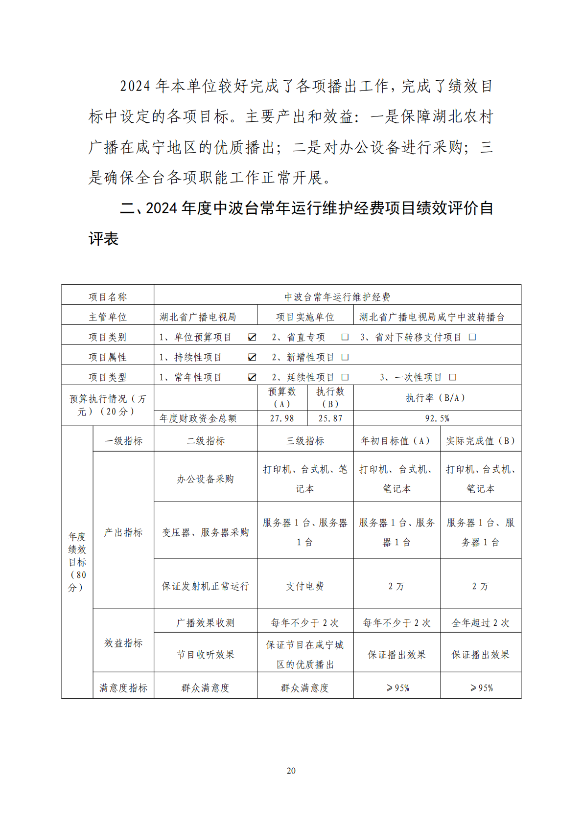 湖北省广播电视局咸宁中波转播台2024年度单位决算