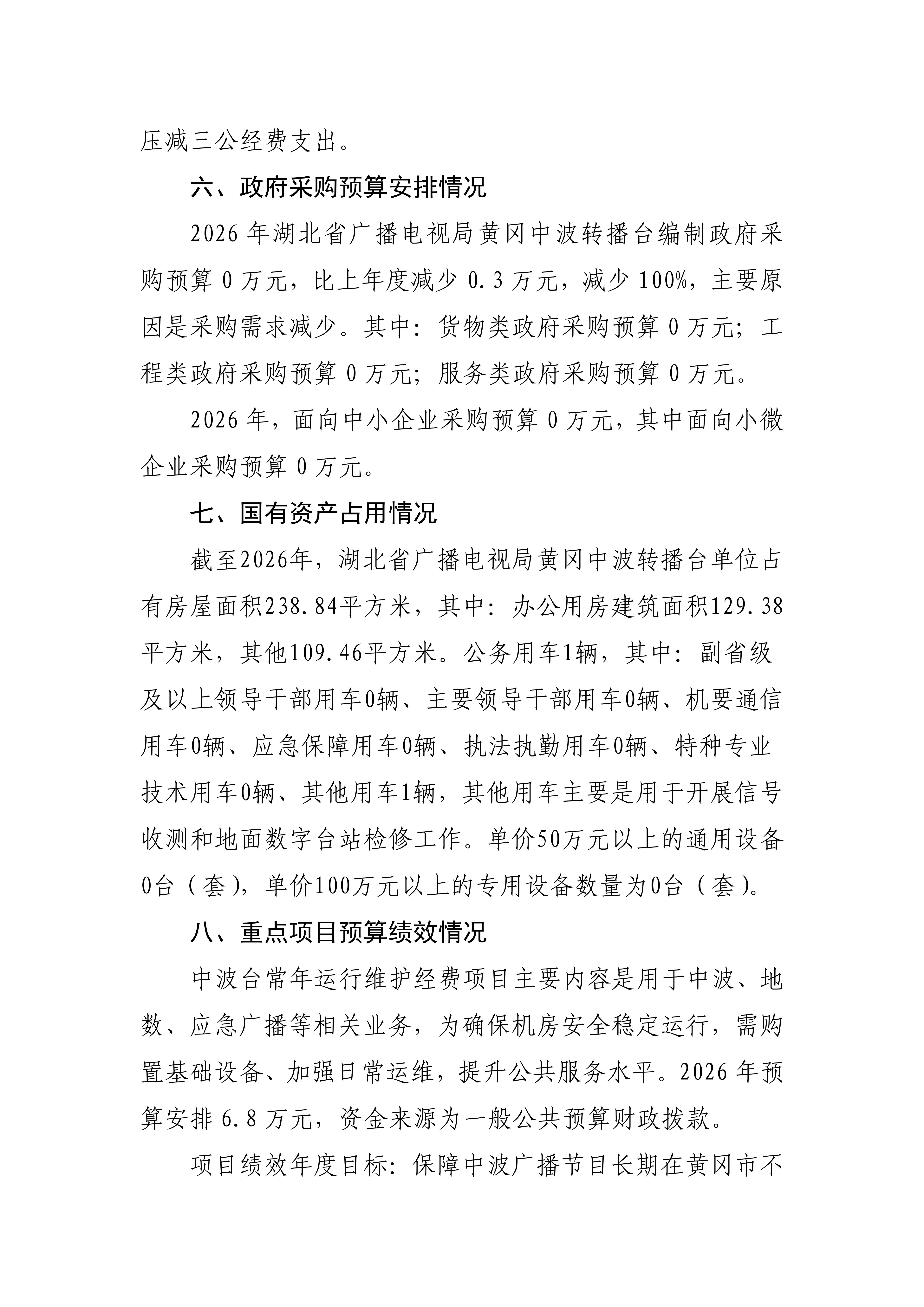 2026年湖北省广播电视局黄冈中波转播台预算公开情况说明