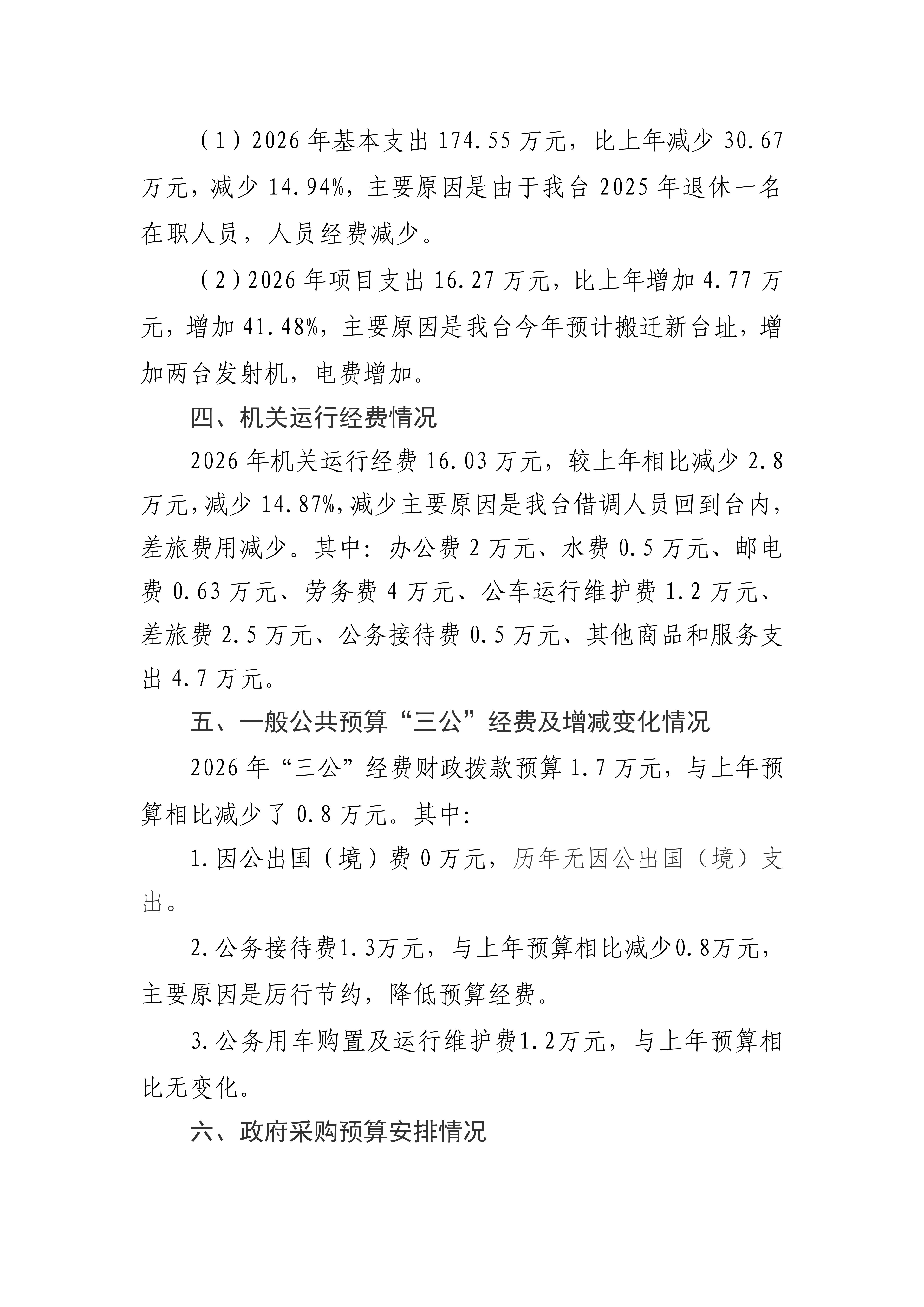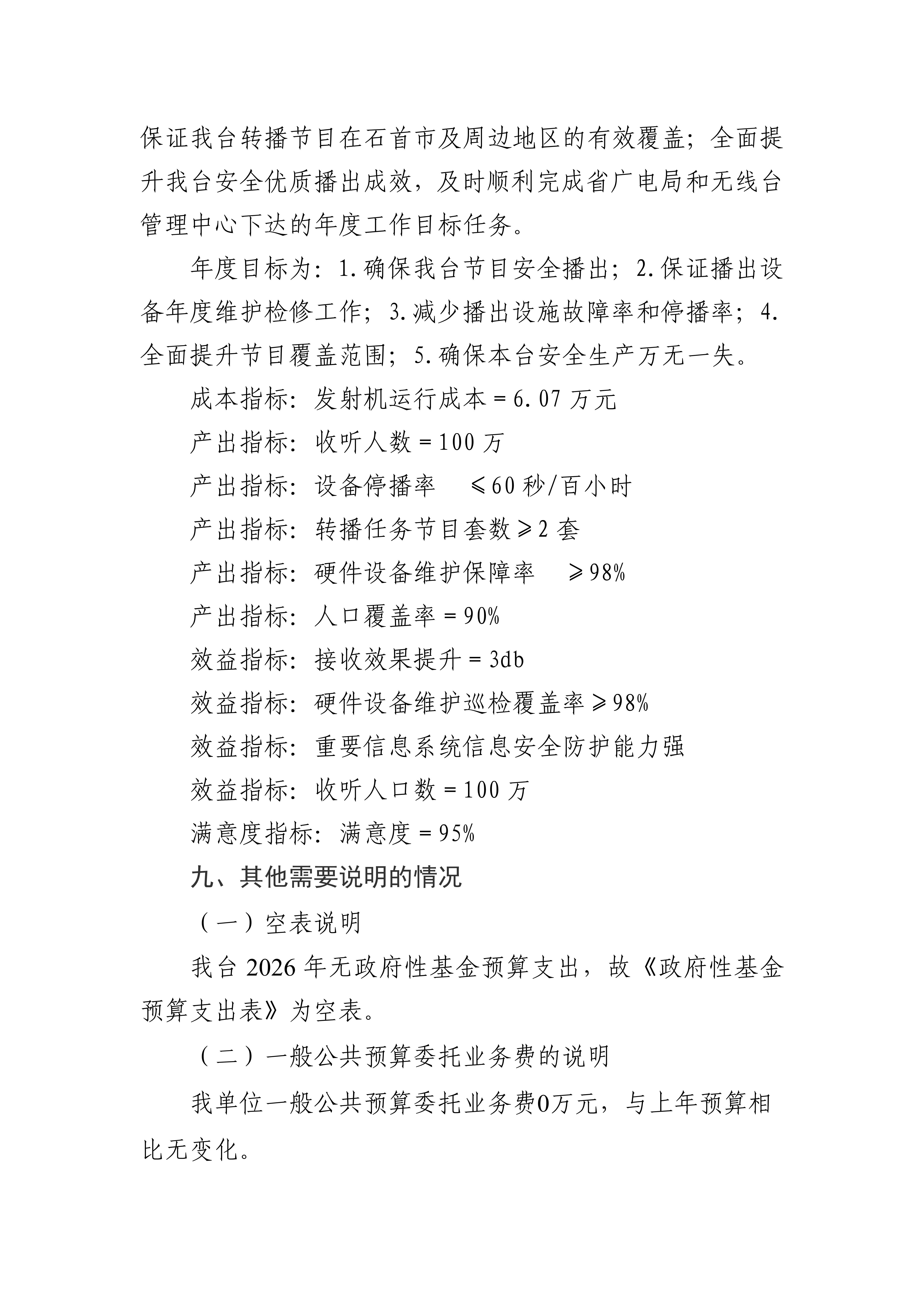 湖北省广播电视局石首中波转播台2026年单位预算公开情况说明