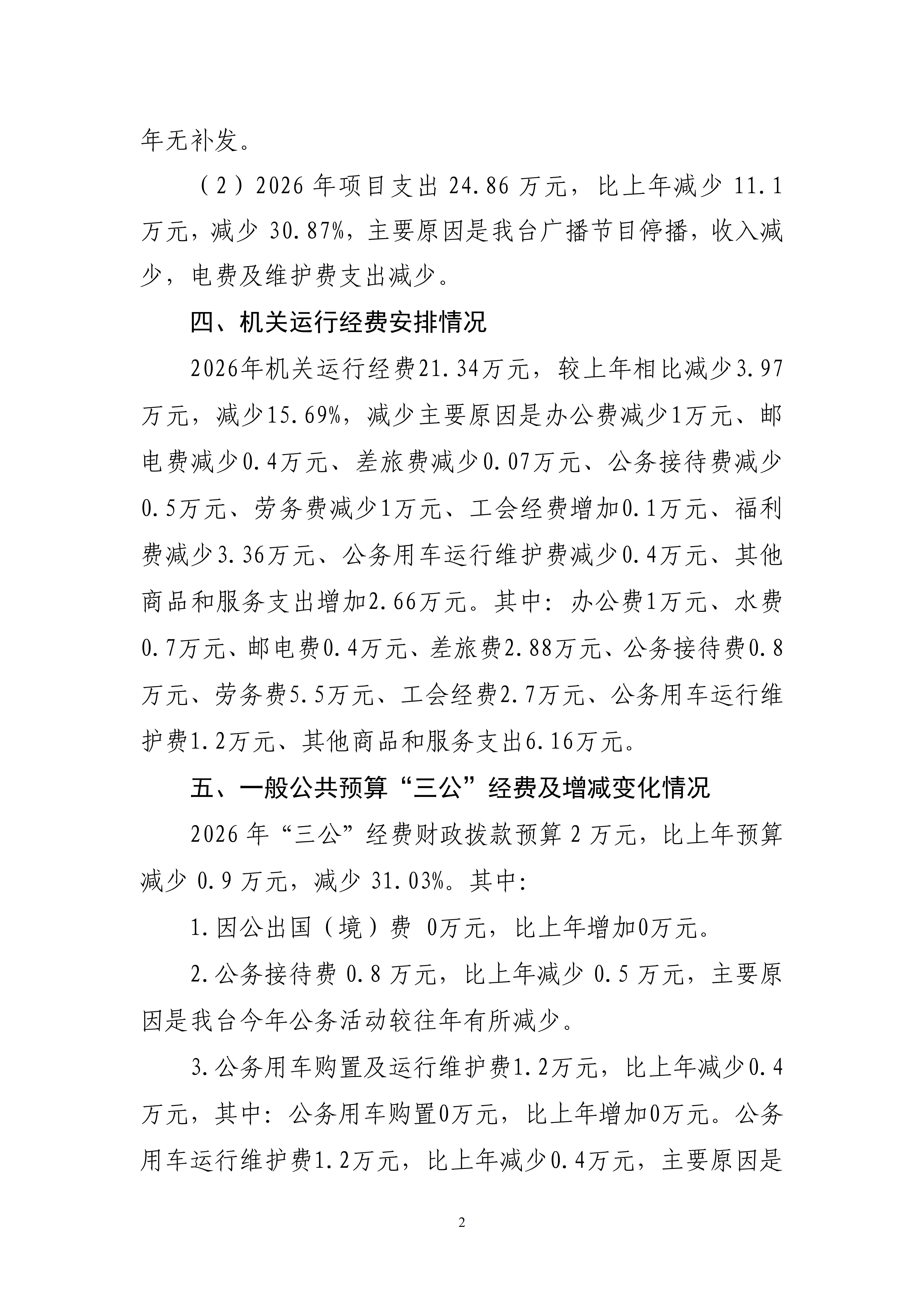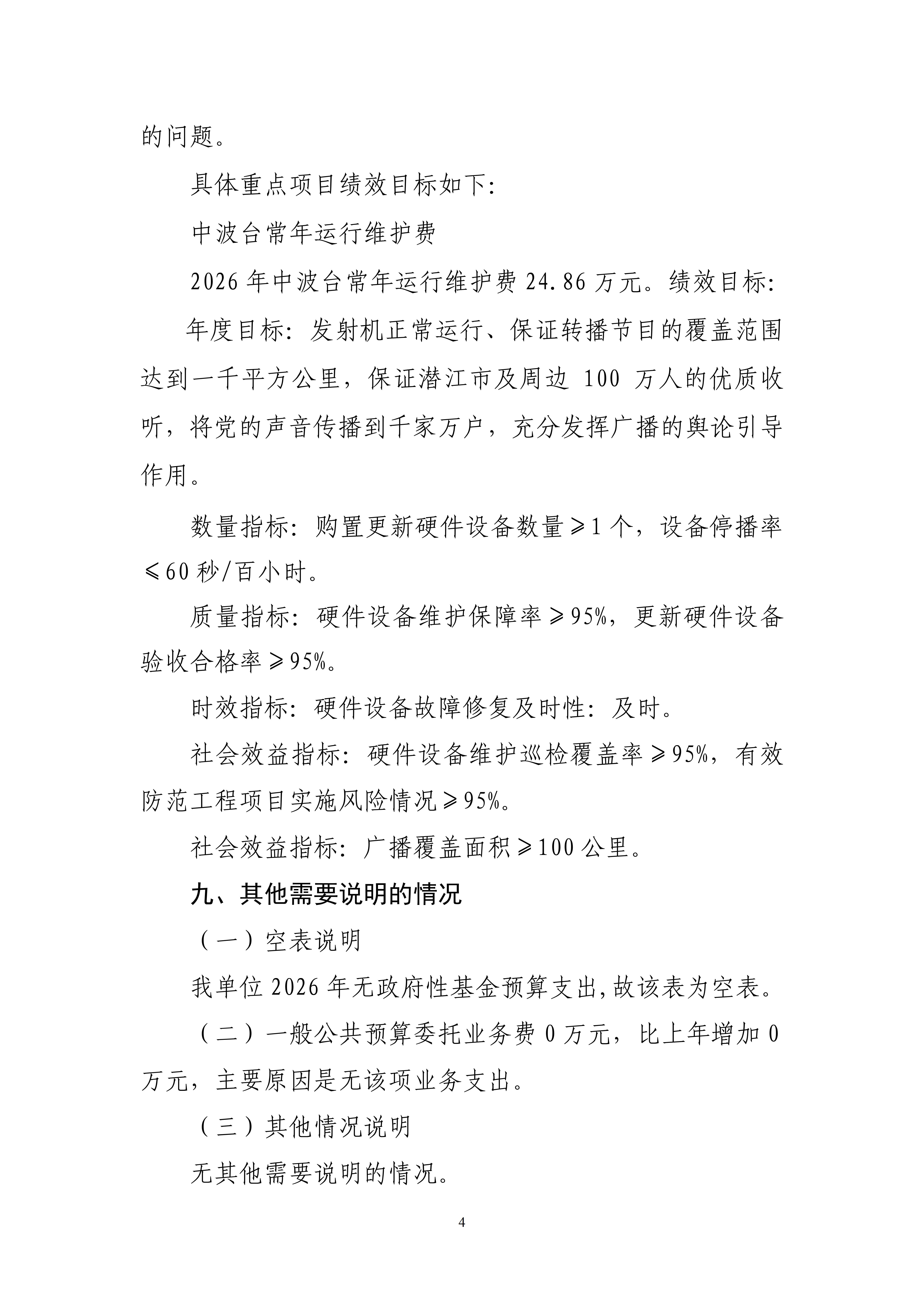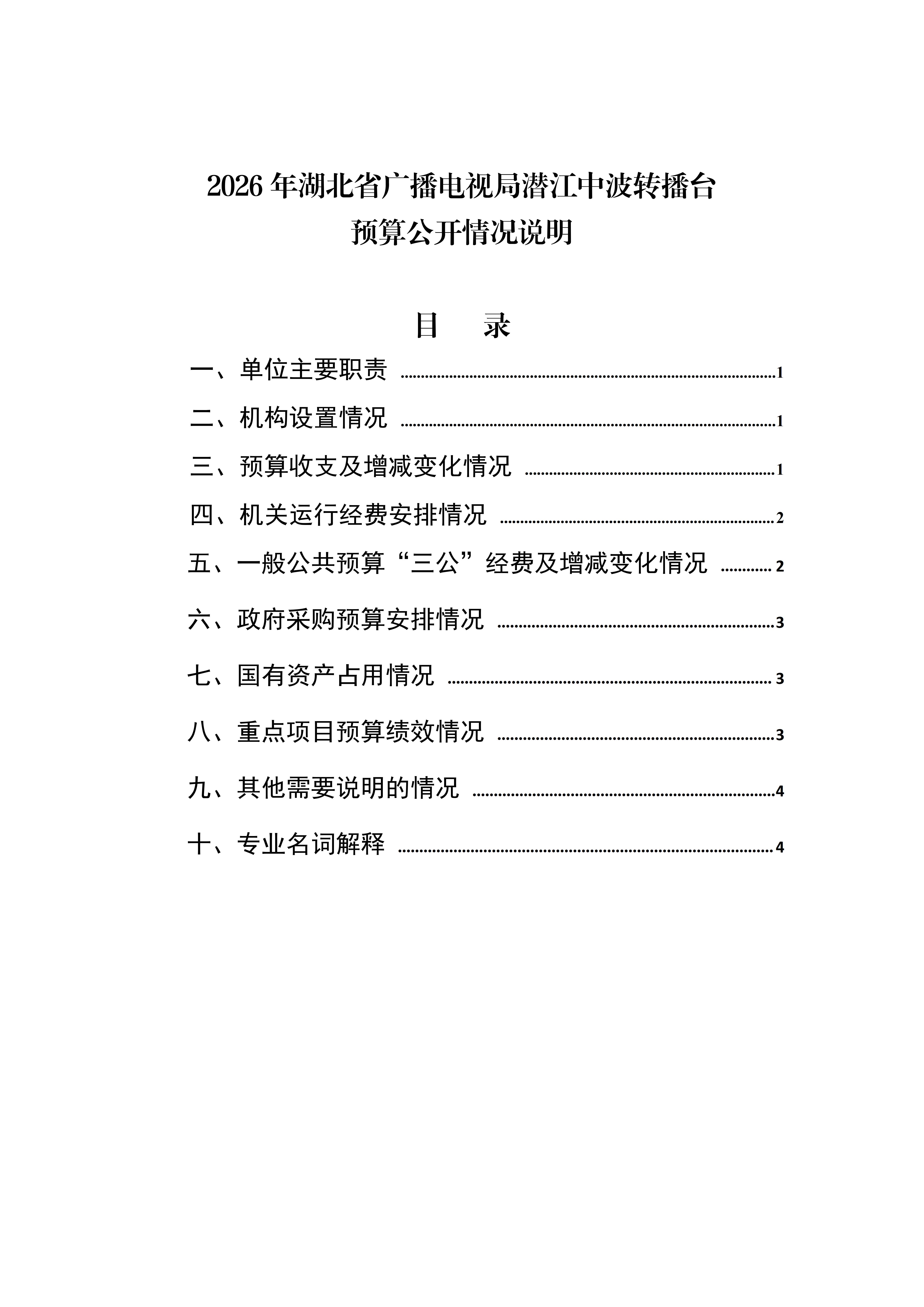 2026年湖北省广播电视局潜江中波转播台预算公开情况说明