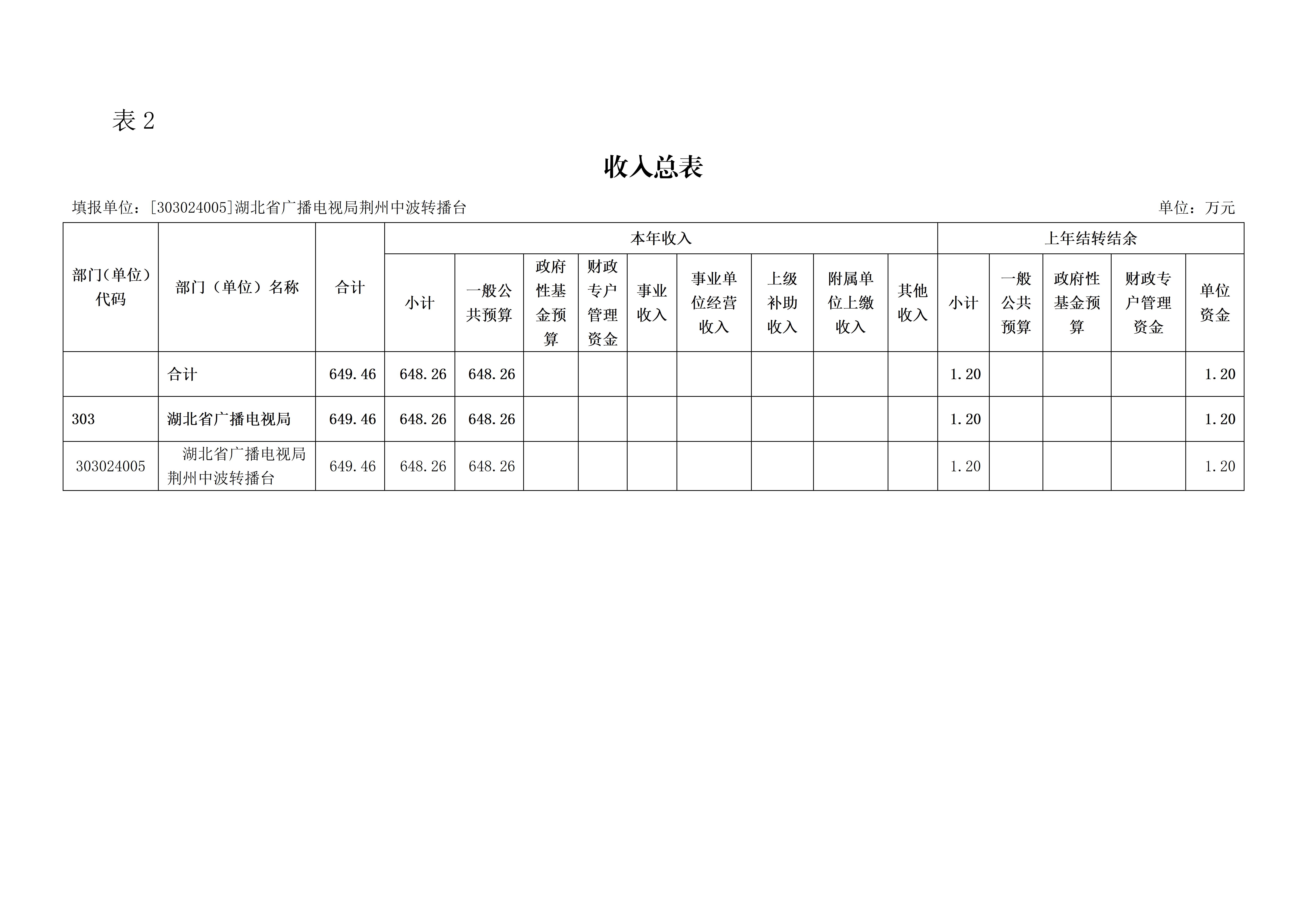 湖北省广播电视局荆州中波转播台2026年单位预算公开情况说明