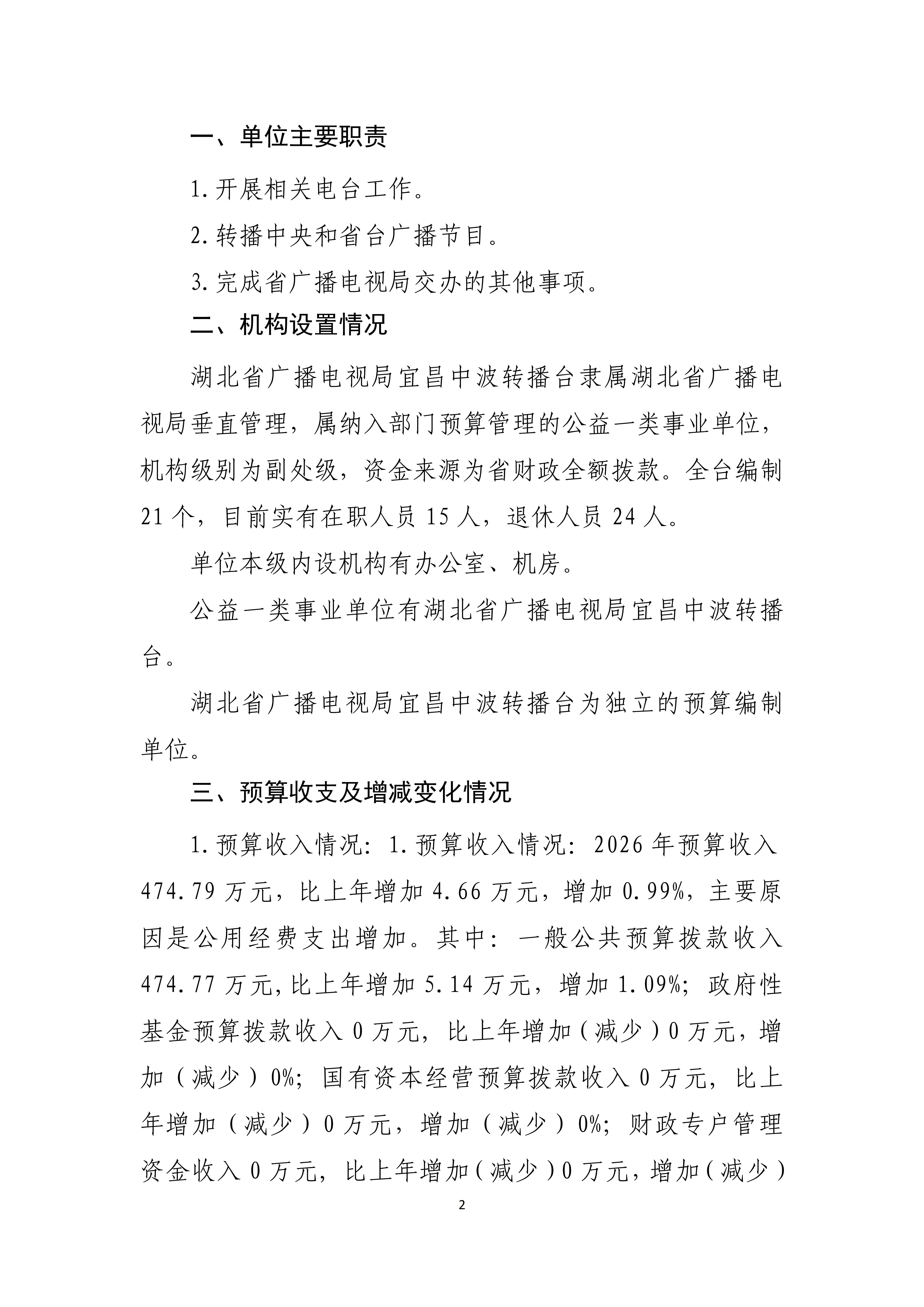2026年湖北省广播电视局宜昌中波转播台预算公开情况说明