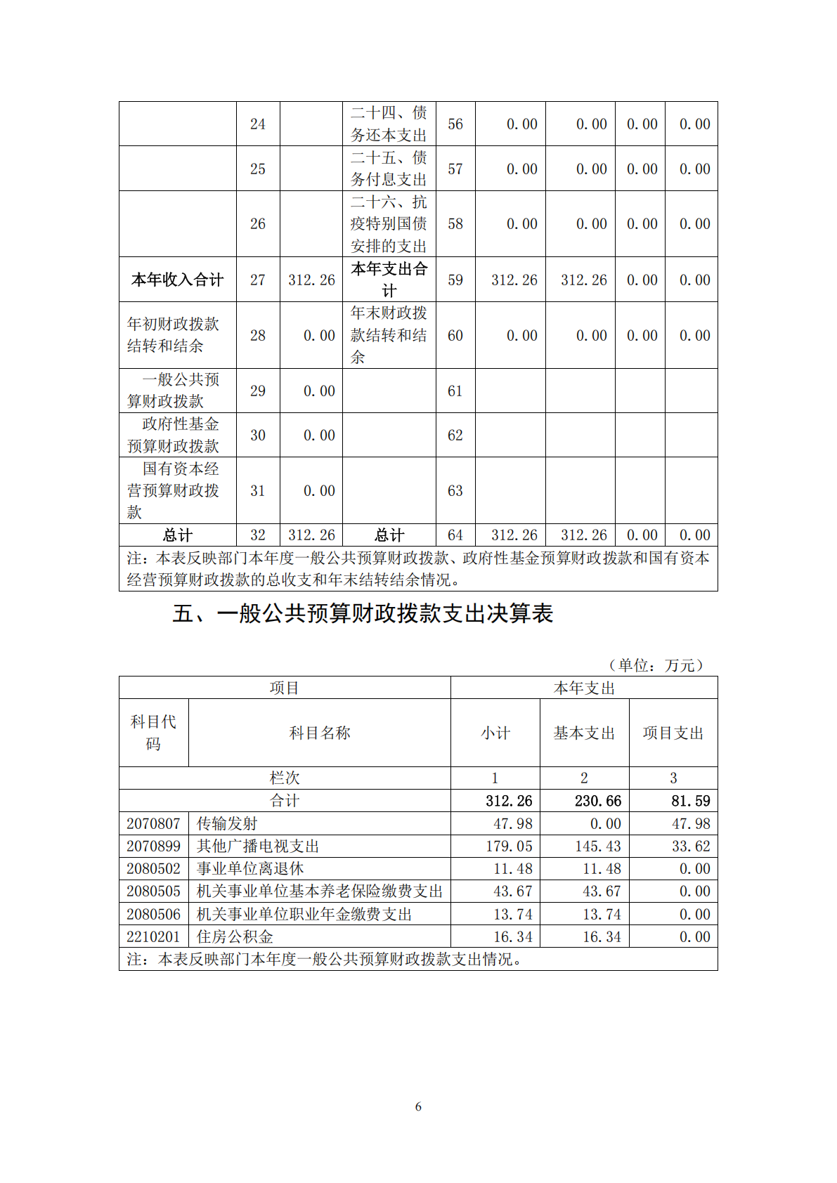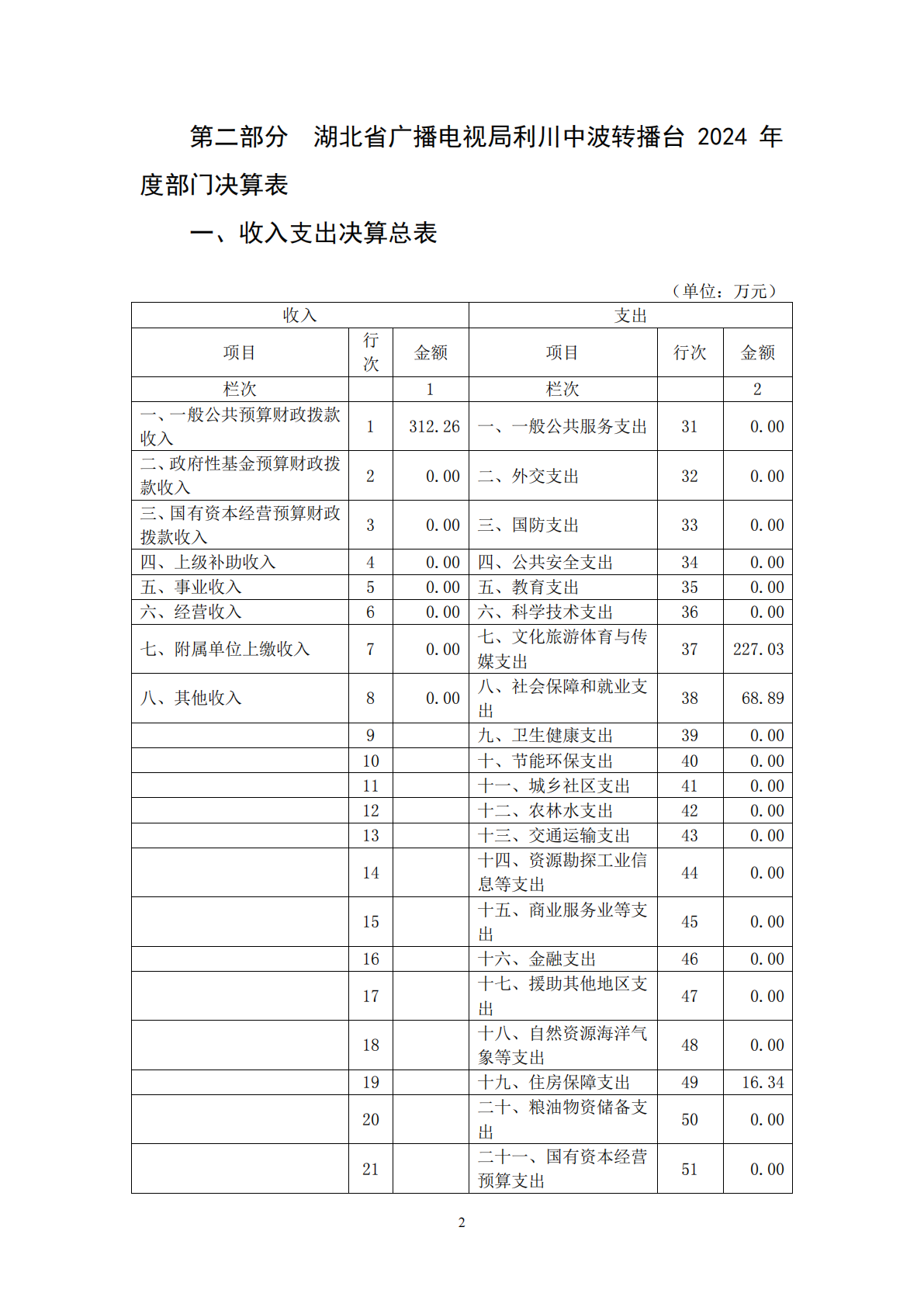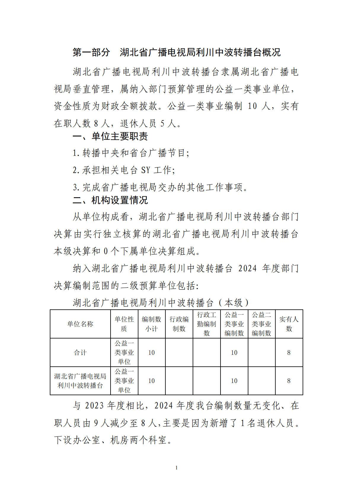 湖北省广播电视局利川中波转播台2024年度部门决算