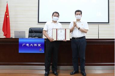 省委宣传部副部长,局党组书记、局长陈正祥为刘永坚教授颁发"广电大课堂特邀授课专家"聘书